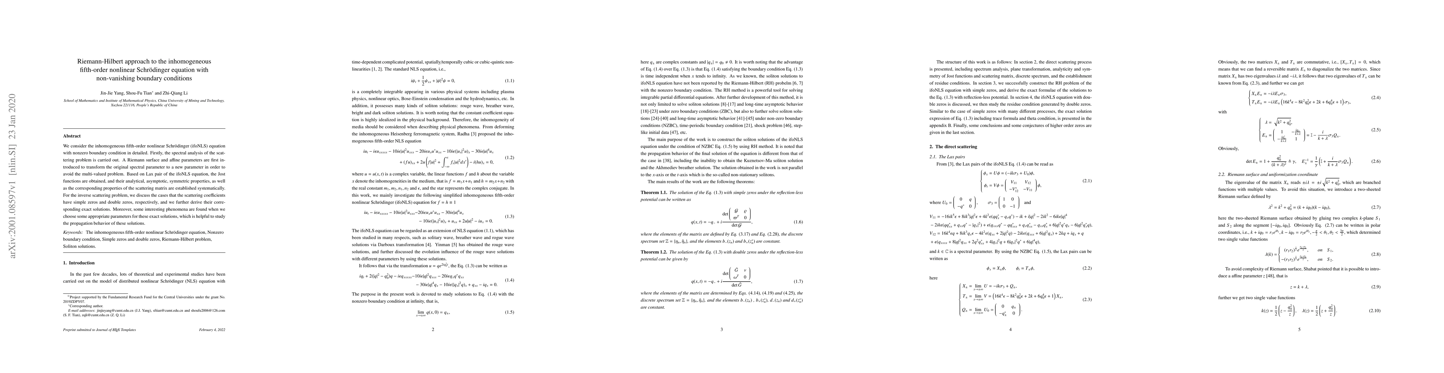 This paper employs a Riemann-Hilbert approach to solve the inhomogeneous fifth-order nonlinear Schrödinger equation with non-zero boundary conditions. It analyzes the scattering problem, introduces a Riemann surface to manage multi-valued issues, and derives exact solutions for cases with simple and double zeros in scattering coefficients.