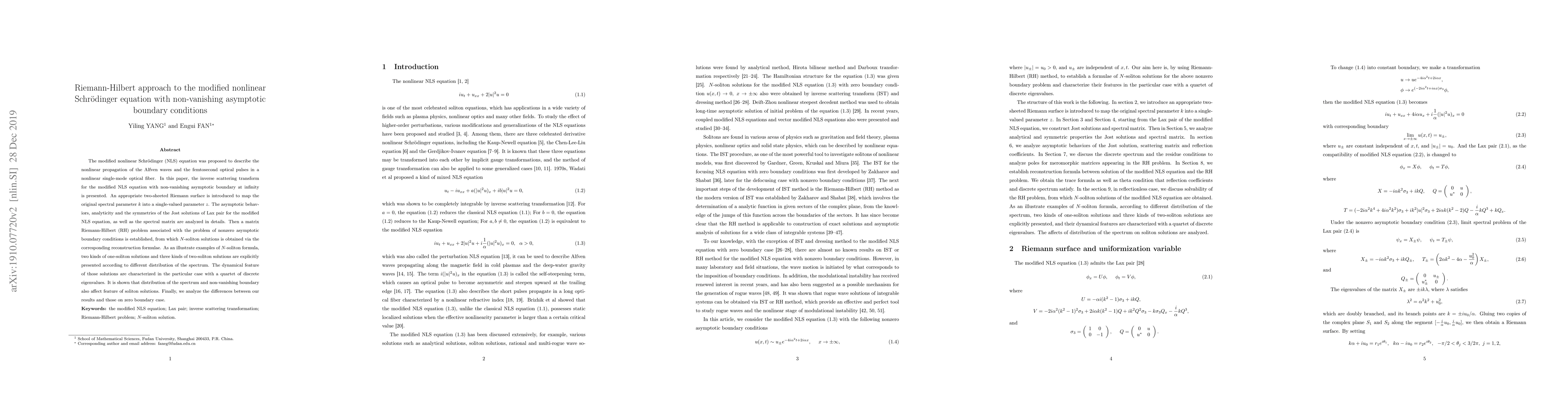 This paper employs a Riemann-Hilbert approach to solve the modified nonlinear Schrödinger equation with non-vanishing asymptotic boundary conditions, deriving $N$-soliton solutions via a matrix Riemann-Hilbert problem and analyzing their dynamical features, particularly in cases with discrete eigenvalues.