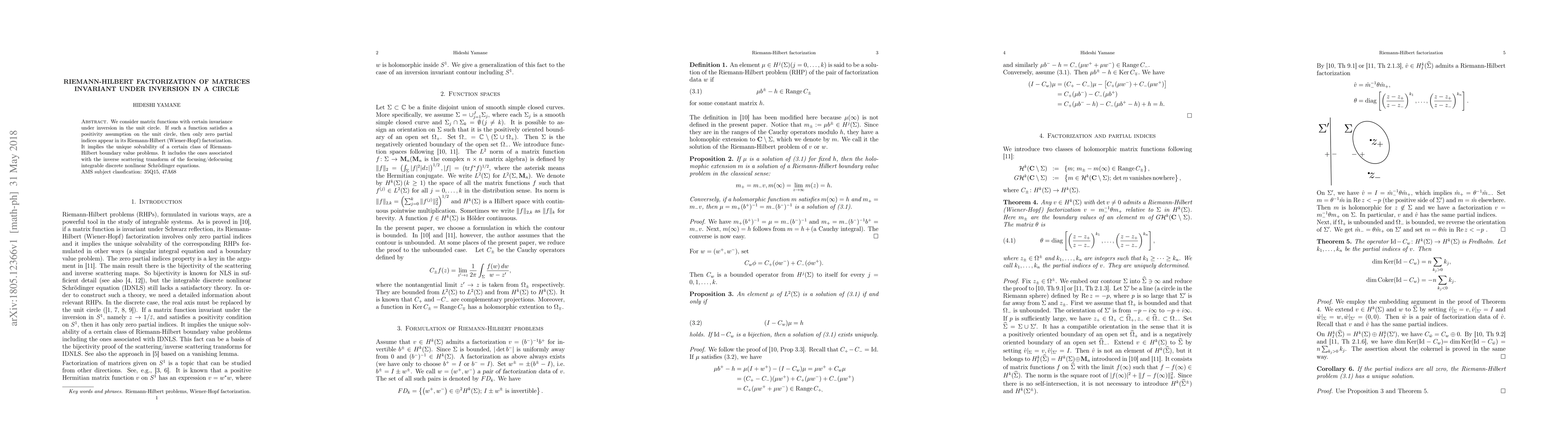 This paper investigates matrix functions invariant under inversion in the unit circle, showing that if they meet a positivity condition, their Riemann-Hilbert factorization yields only zero partial indices, ensuring the unique solvability of related boundary value problems, including those from the inverse scattering transform of integrable discrete nonlinear Schrödinger equations.