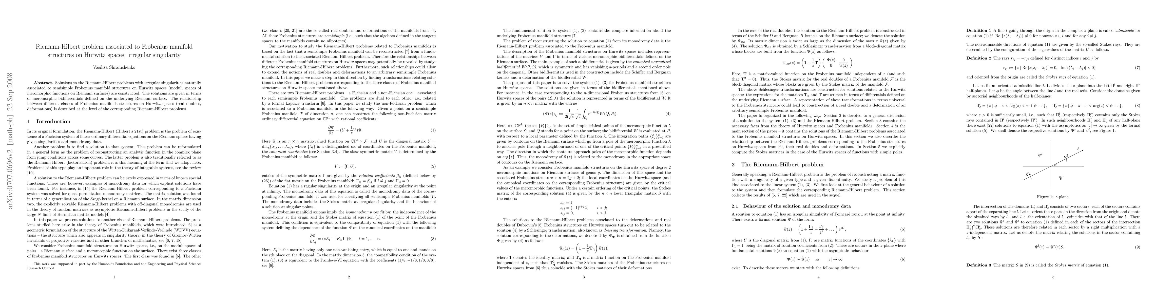 This paper constructs solutions to Riemann-Hilbert problems for semisimple Frobenius manifold structures on Hurwitz spaces, using meromorphic bidifferentials. It explores the relationships between different classes of Frobenius structures in terms of their associated Riemann-Hilbert problems.