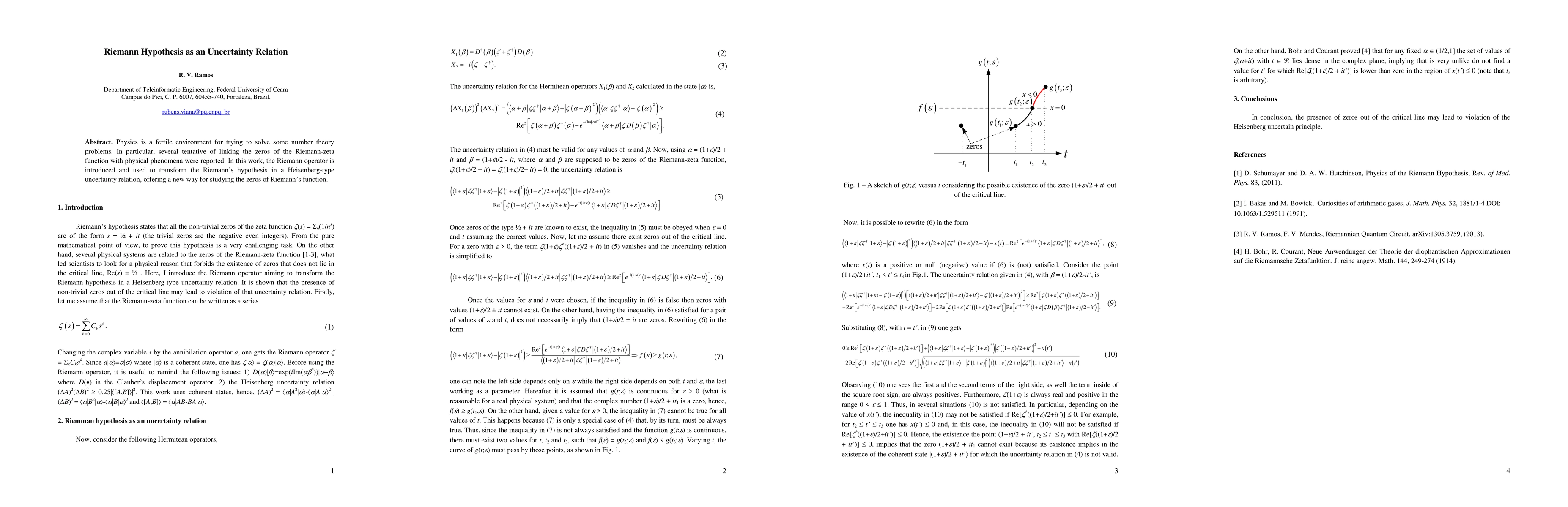 Physics is a fertile environment for trying to solve some number theory problems. In particular, several tentative of linking the zeros of the Riemann-zeta function with physical phenomena were reported. In this work, the Riemann operator is introduced and used to transform the Riemann's hypothesis in a Heisenberg-type uncertainty relation, offering a new way for studying the zeros of Riemann's function