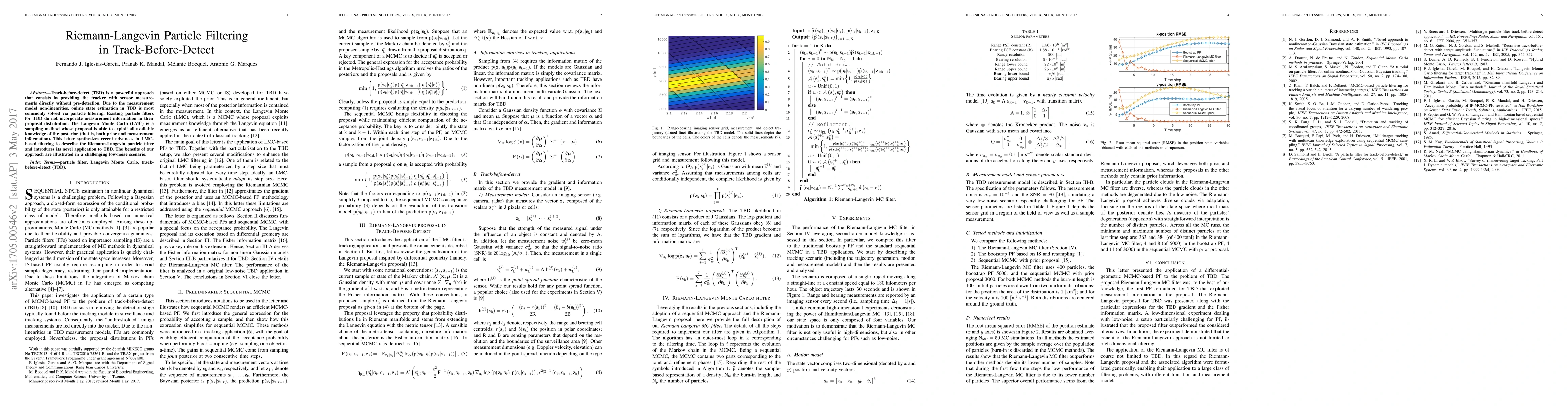 This paper introduces the Riemann-Langevin particle filter for track-before-detect (TBD) applications, leveraging Langevin Monte Carlo to incorporate both prior and measurement information in the proposal distribution. The method demonstrates improved performance in low-noise scenarios compared to existing particle filters.