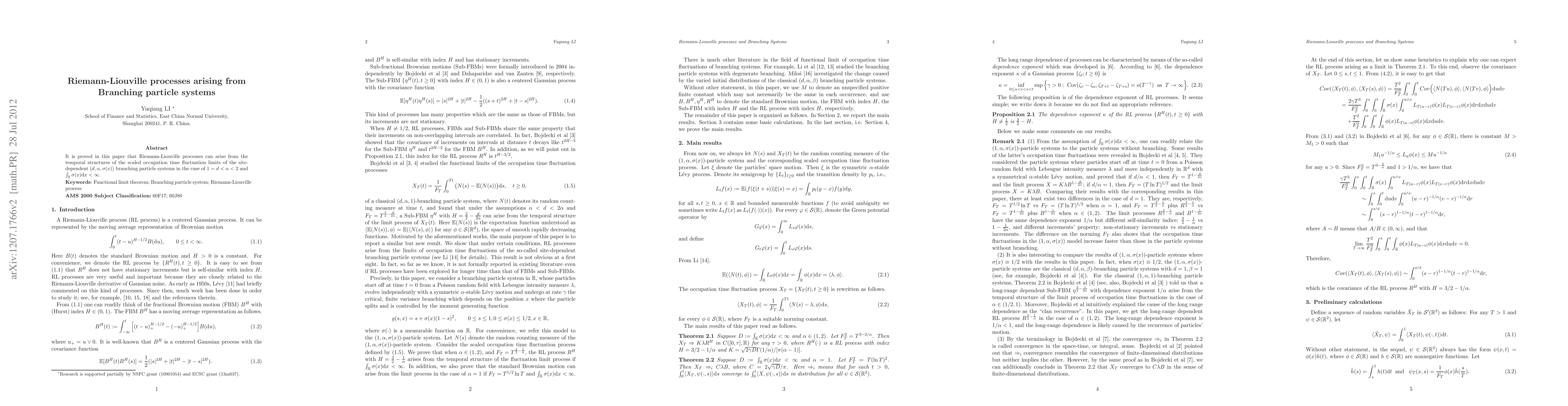 This paper demonstrates that Riemann-Liouville processes emerge from the scaled occupation time fluctuations of site-dependent branching particle systems under specific conditions, specifically when \(1=d<\alpha<2\) and \(\int_{\R}\sigma(x)\, dx<\infty\). The findings establish a connection between these stochastic processes and the temporal structures of branching particle systems.