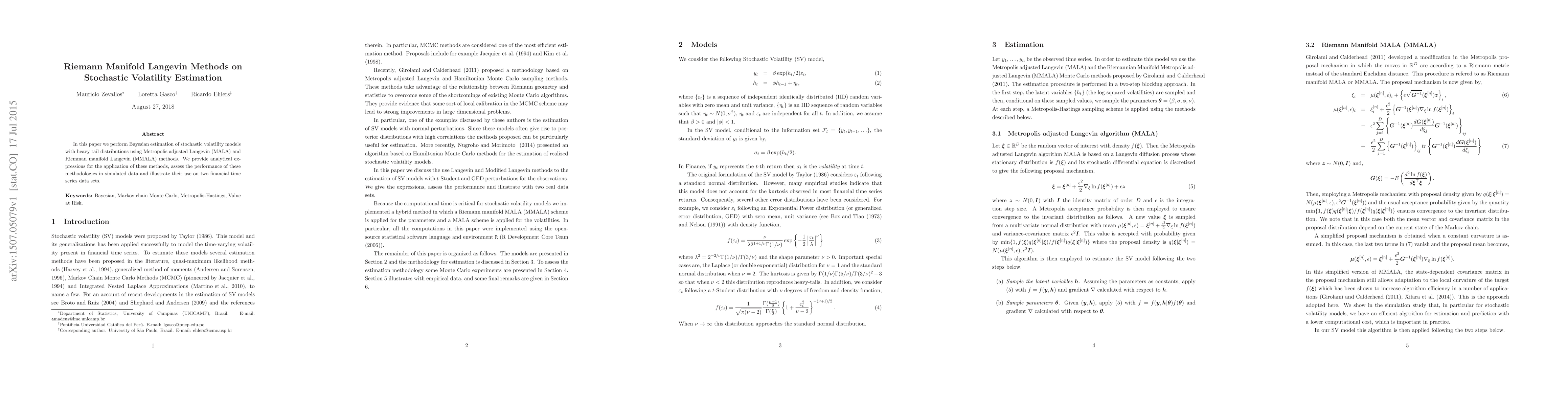 In this paper we perform Bayesian estimation of stochastic volatility models with heavy tail distributions using Metropolis adjusted Langevin (MALA) and Riemman manifold Langevin (MMALA) methods. We provide analytical expressions for the application of these methods, assess the performance of these methodologies in simulated data and illustrate their use on two financial time series data sets.