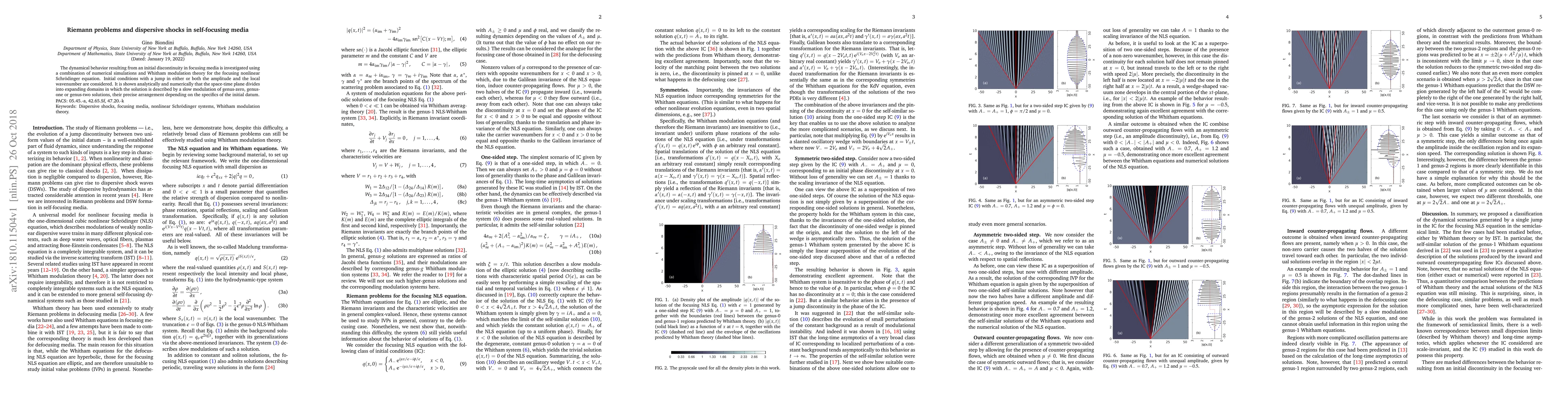 The dynamical behavior resulting from an initial discontinuity in focusing media is investigated using a combination of numerical simulations and Whitham modulation theory for the focusing nonlinear Schrodinger equation. Initial conditions with a jump in either or both the amplitude and the local wavenumber are considered. It is shown analytically and numerically that the space-time plane divides into expanding domains in which the solution is described by a slow modulation of genus-zero, genus-one or genus-two solutions, their precise arrangement depending on the specifics of the initial datum