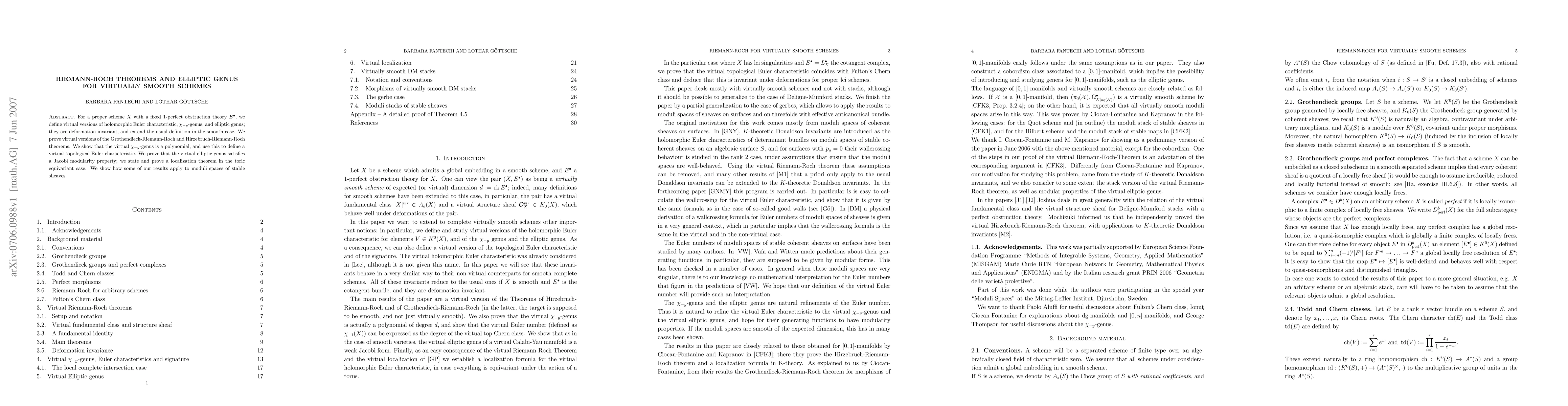 This paper defines virtual versions of the chi y-genus and elliptic genus for virtually smooth schemes, proving virtual Riemann-Roch theorems and showing that these virtual genera satisfy modularity properties and localization theorems. It also applies these results to moduli spaces of stable sheaves.