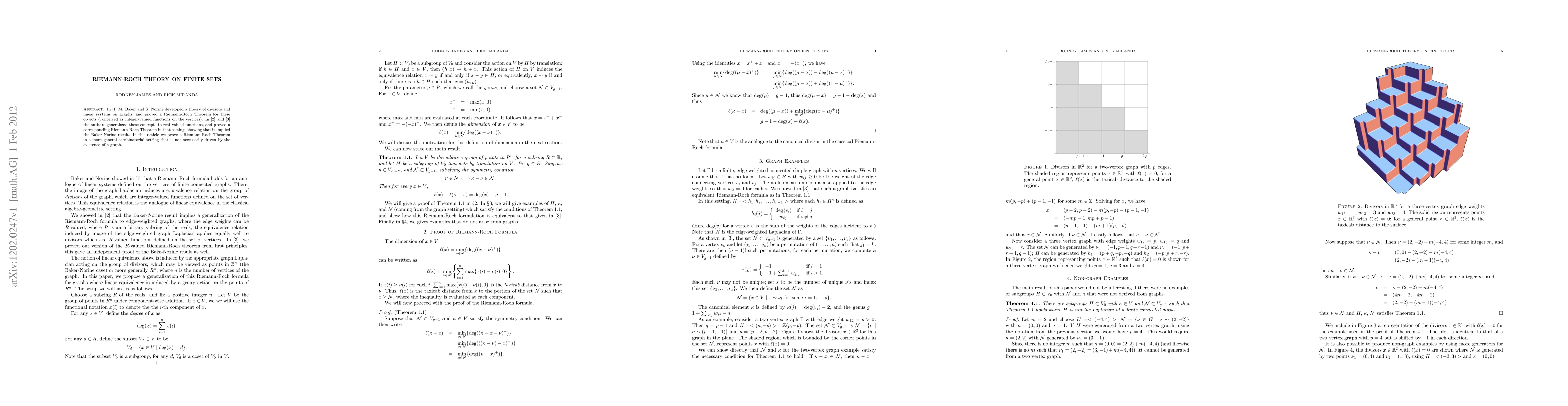 This paper extends Riemann-Roch theory to finite sets without reliance on graph structures, generalizing previous results by Baker and Norine that applied to both integer-valued and real-valued functions on graphs. The authors establish a new combinatorial Riemann-Roch Theorem applicable in broader settings.