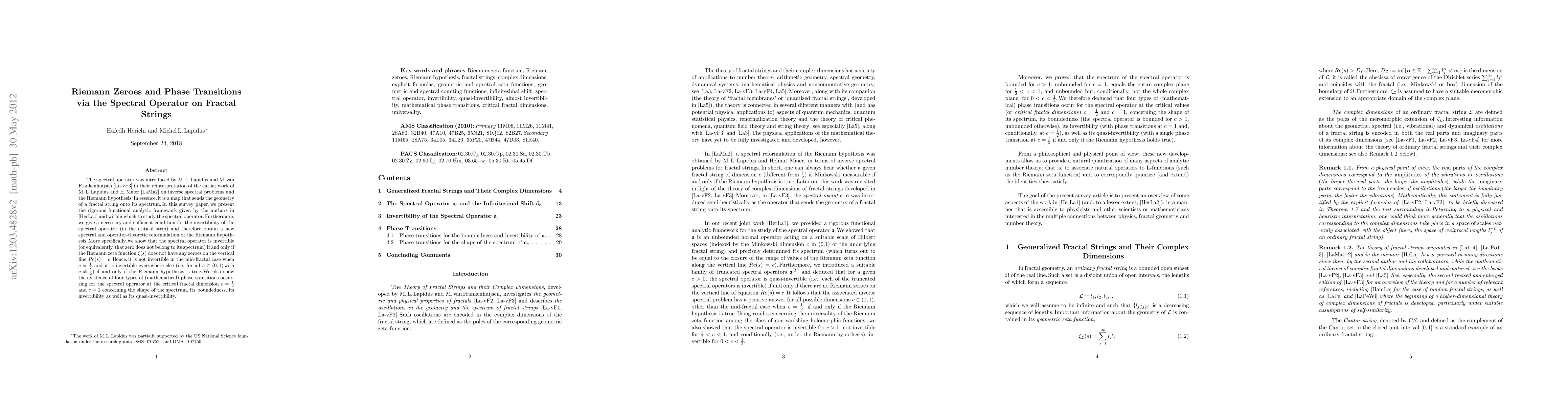 This paper explores the spectral operator introduced by Lapidus and Frankenhuijsen, linking fractal geometry to the spectrum of the operator. It provides a functional analytic framework for studying the operator and establishes a condition for its invertibility, offering a new spectral perspective on the Riemann hypothesis. The study reveals four types of phase transitions for the operator at critical fractal dimensions, particularly highlighting the non-invertibility at c=1/2.