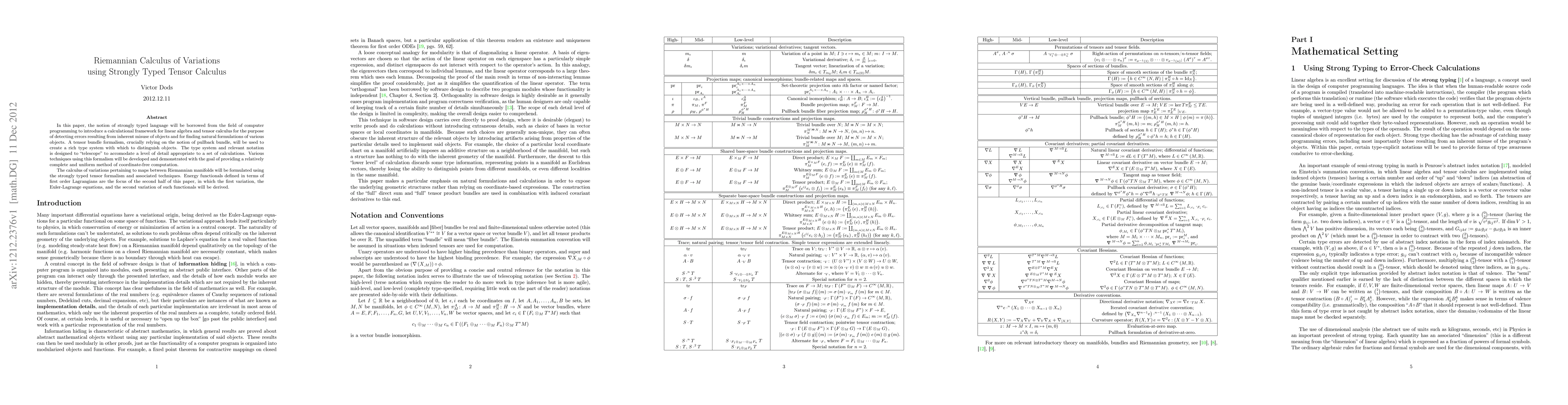 In this paper, the notion of strongly typed language will be borrowed from the field of computer programming to introduce a calculational framework for linear algebra and tensor calculus for the purpose of detecting errors resulting from inherent misuse of objects and for finding natural formulations of various objects. A tensor bundle formalism, crucially relying on the notion of pullback bundle, will be used to create a rich type system with which to distinguish objects. The type system and relevant notation is designed to "telescope" to accomodate a level of detail appropriate to a set of calculations. Various techniques using this formalism will be developed and demonstrated with the goal of providing a relatively complete and uniform method of coordinate-free computation. The calculus of variations pertaining to maps between Riemannian manifolds will be formulated using the strongly typed tensor formalism and associated techniques. Energy functionals defined in terms of first order Lagrangians are the focus of the second half of this paper, in which in the first variation, the Euler-Lagrange equations, and the second variation of such functionals will be derived.
