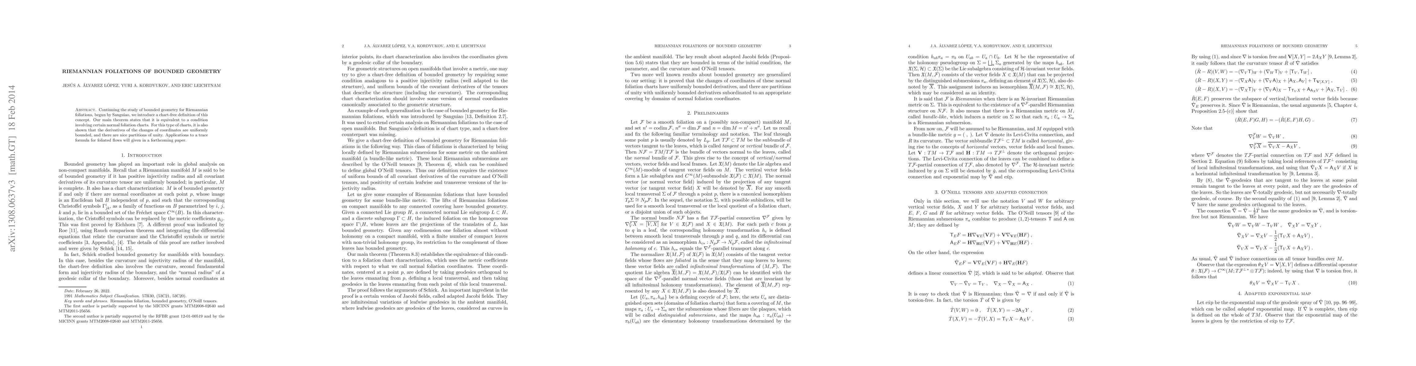 The paper introduces a chart-free definition of bounded geometry for Riemannian foliations, extending previous work by Sanguiao.