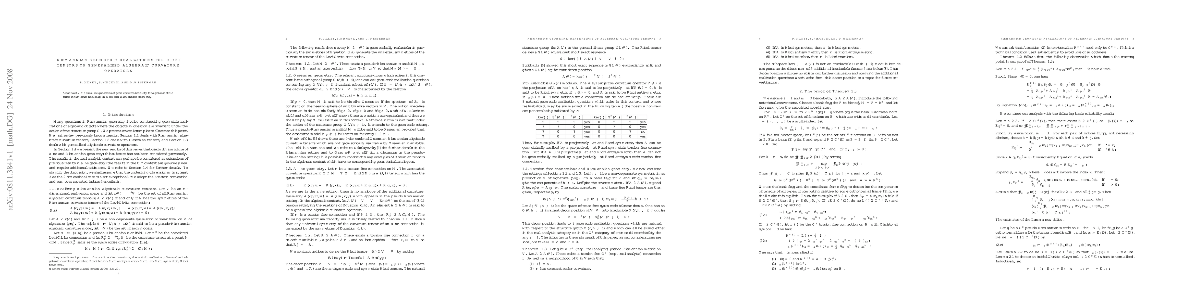 This paper explores the geometric realizability of algebraic curvature operators in Riemannian geometry, constructing a torsion-free connection whose curvature operator matches a given Ricci tensor. It demonstrates that specific properties of the Ricci tensor, such as symmetry or trace-free nature, can be realized in the constructed connection.