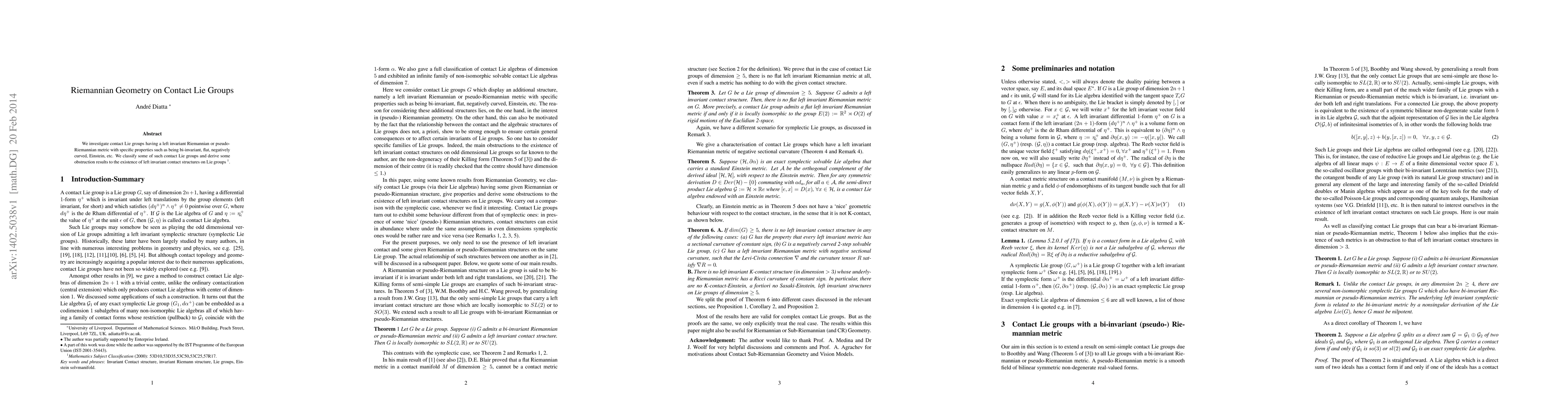 This paper classifies contact Lie groups endowed with specific left-invariant Riemannian metrics, examining properties like bi-invariance and negative curvature. It also presents obstructions to the existence of left-invariant contact structures on Lie groups.