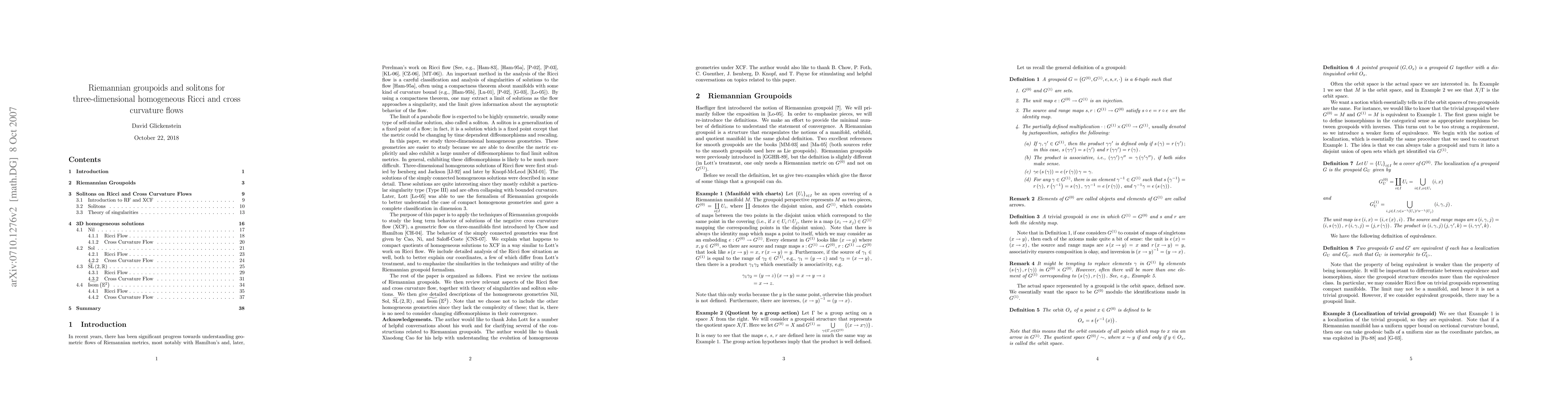 This paper investigates three-dimensional homogeneous solutions of cross curvature flow using Riemannian groupoids, finding soliton metrics on certain manifolds and showing the limiting behavior of a specific groupoid.