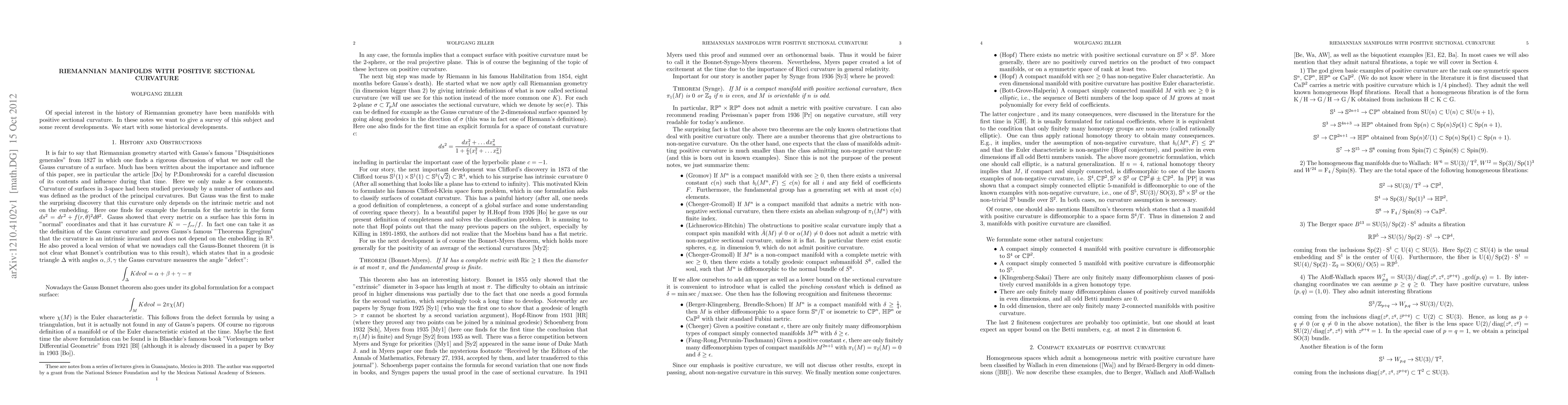 This paper is a survey of recent results on manifolds with positive curvature, focusing on key findings and implications from 2010 lectures in Guanajuato, Mexico.