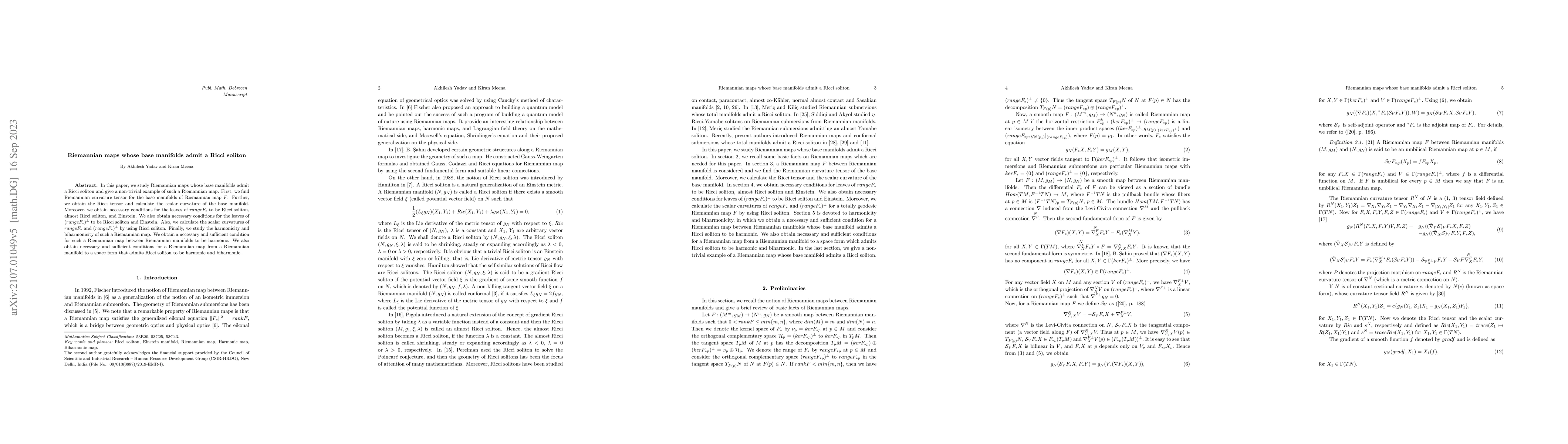 This paper investigates Riemannian maps from manifolds with Ricci soliton structures, providing an example and deriving conditions for the harmonicity and biharmonicity of such maps. It calculates the Ricci tensor and scalar curvature of the base manifolds and explores necessary conditions for the submanifolds to exhibit Ricci soliton, almost Ricci soliton, and Einstein properties.