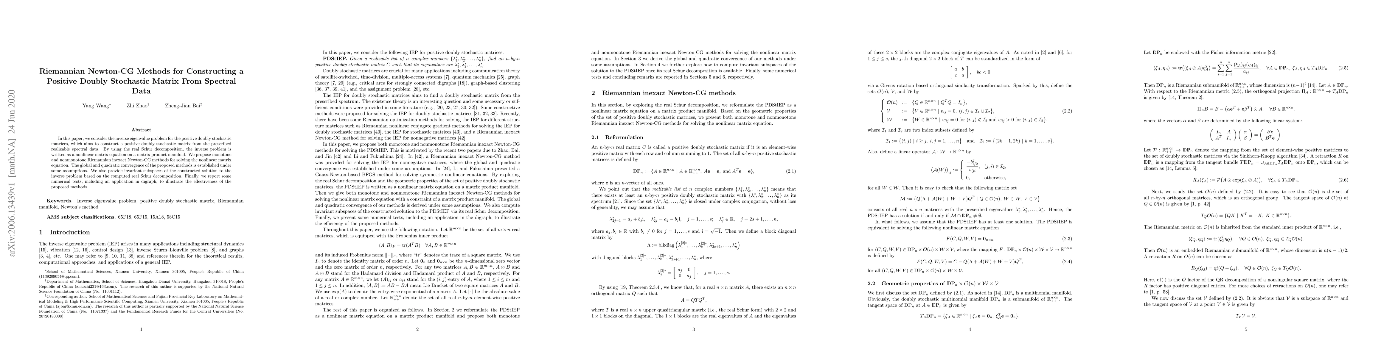 This paper proposes Riemannian Newton-CG methods for solving the inverse eigenvalue problem of constructing a positive doubly stochastic matrix from given spectral data. The methods achieve global and quadratic convergence and are demonstrated through numerical tests, including an application to digraph analysis.