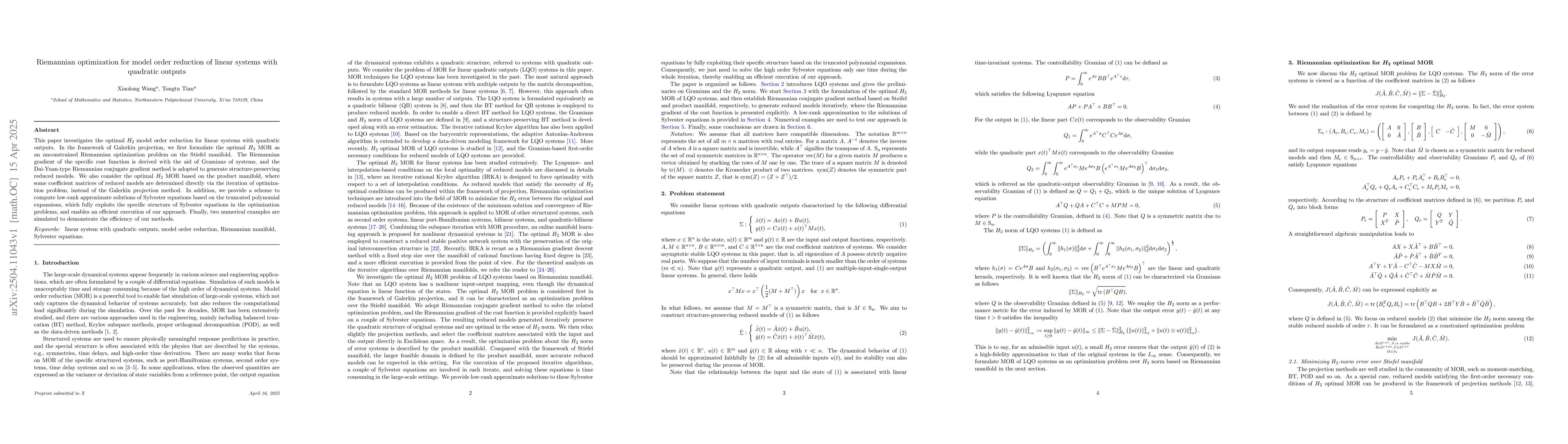 The paper formulates optimal H2 MOR as an unconstrained Riemannian optimization problem on the Stiefel manifold, deriving the Riemannian gradient using Gramians of systems. It employs the Dai-Yuan-type Riemannian conjugate gradient method for structure-preserving reduced models and considers optimal H2 MOR on a product manifold, determining coefficient matrices directly via optimization problem iteration.