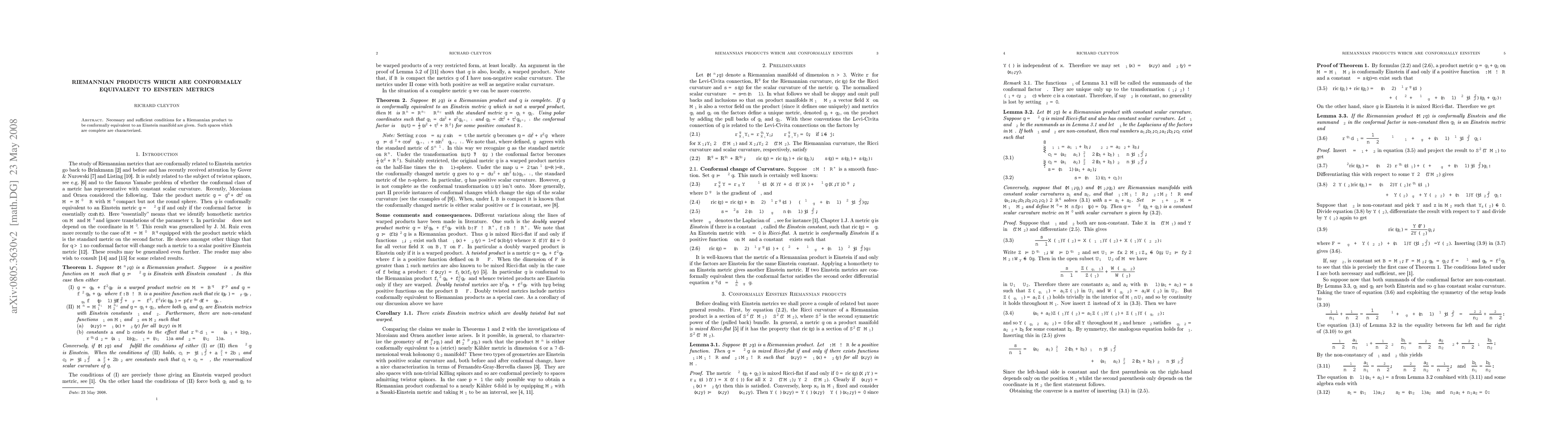 Necessary and sufficient conditions for a Riemannian product to be conformally equivalent to an Einstein manifold are given. Such spaces which are complete are characterized.