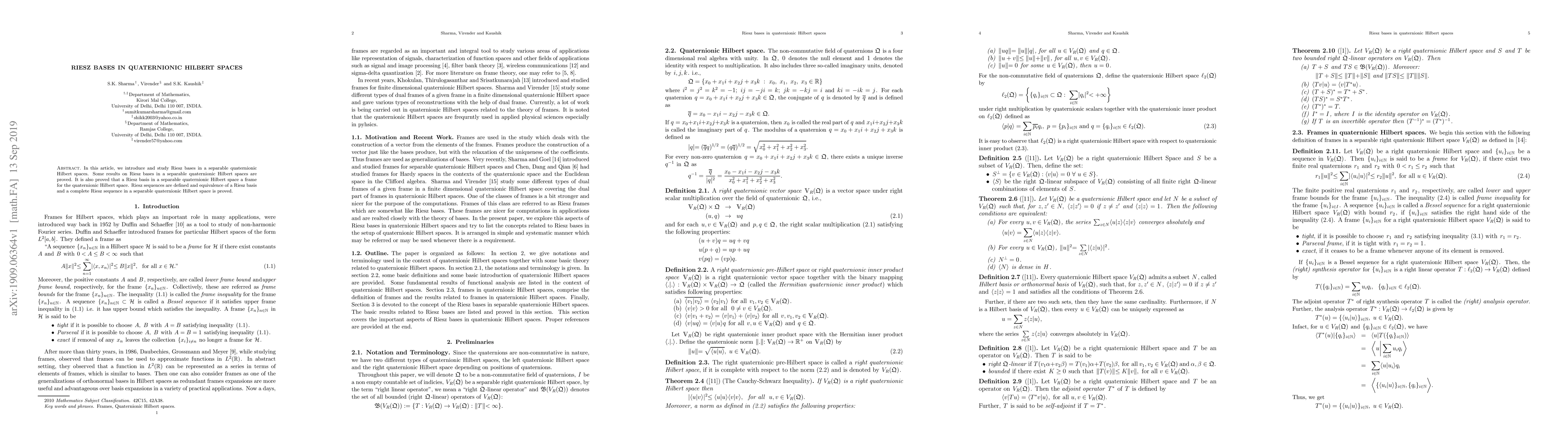 This paper introduces and explores Riesz bases in separable quaternionic Hilbert spaces, proving their equivalence to frames and establishing the relationship between Riesz bases and Riesz sequences. It also demonstrates the completeness of Riesz sequences in these spaces.
