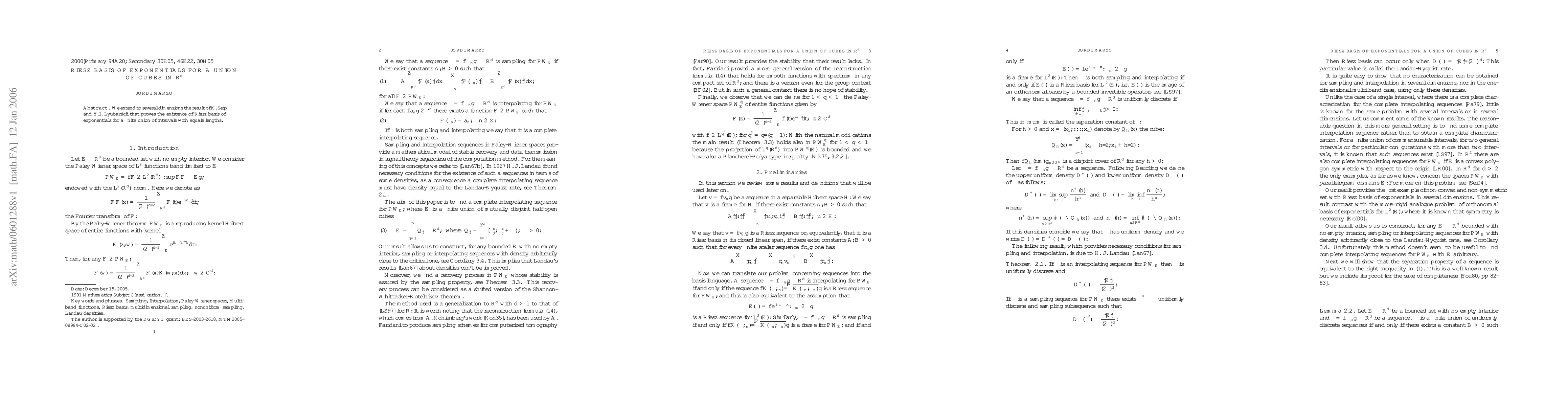 This paper extends a previous result to prove that exponentials form a Riesz basis for a union of cubes in higher dimensions, building on the existence of such a basis for intervals with equal lengths.