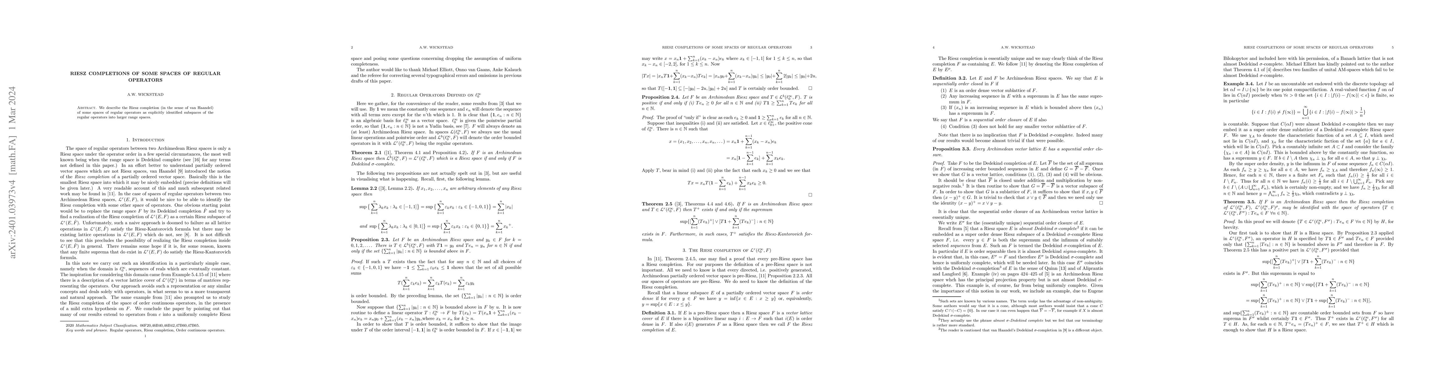 This paper details the Riesz completion of specific spaces of regular operators, identifying them as explicit subspaces within larger range spaces. The focus is on the structural completions in the sense of van Haandel.