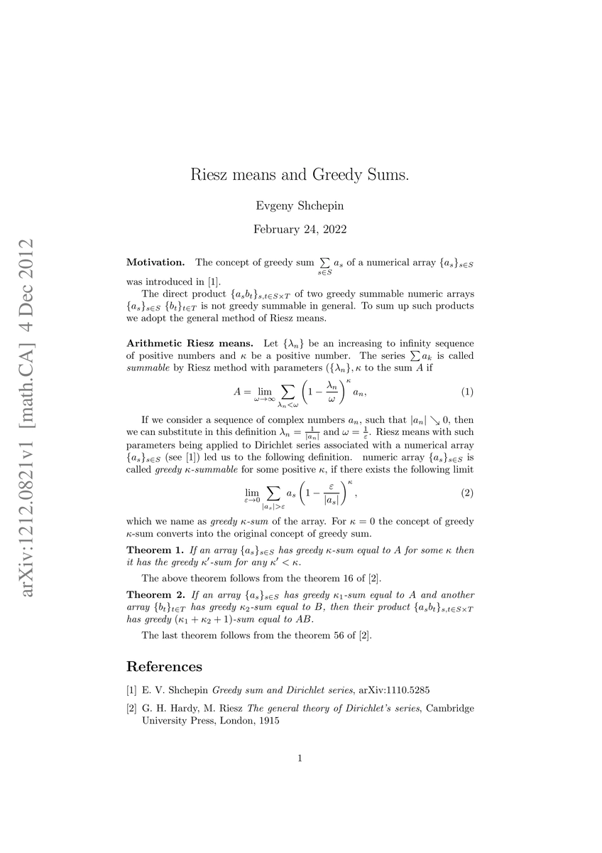One introduces the concept of greedy k-summability in such a way, that the direct product of one greedy k-summable numeric array onto another greedy n-summable numeric array to be greedy (n+k+1)-summable.