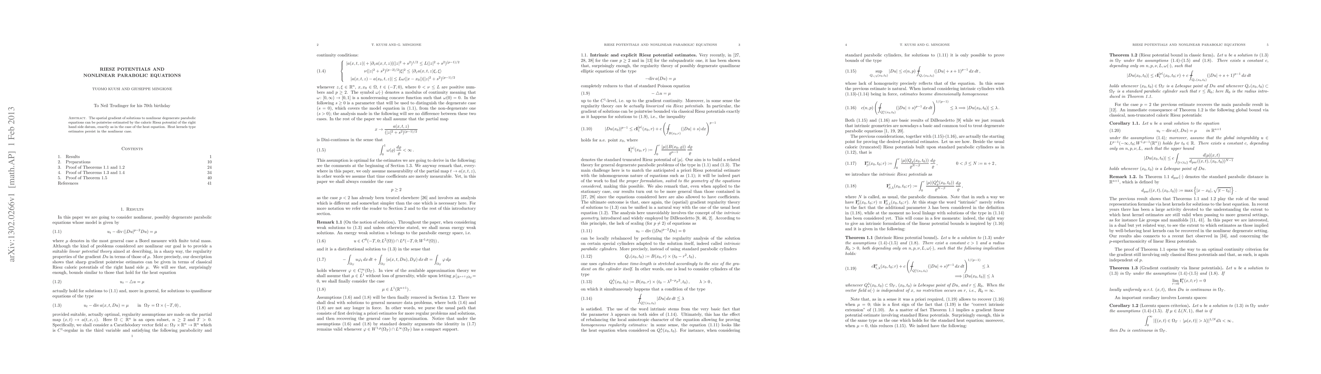 Researchers demonstrate that spatial gradients of solutions to nonlinear parabolic equations can be estimated using the caloric Riesz potential of the right-hand side datum, similar to the heat equation.