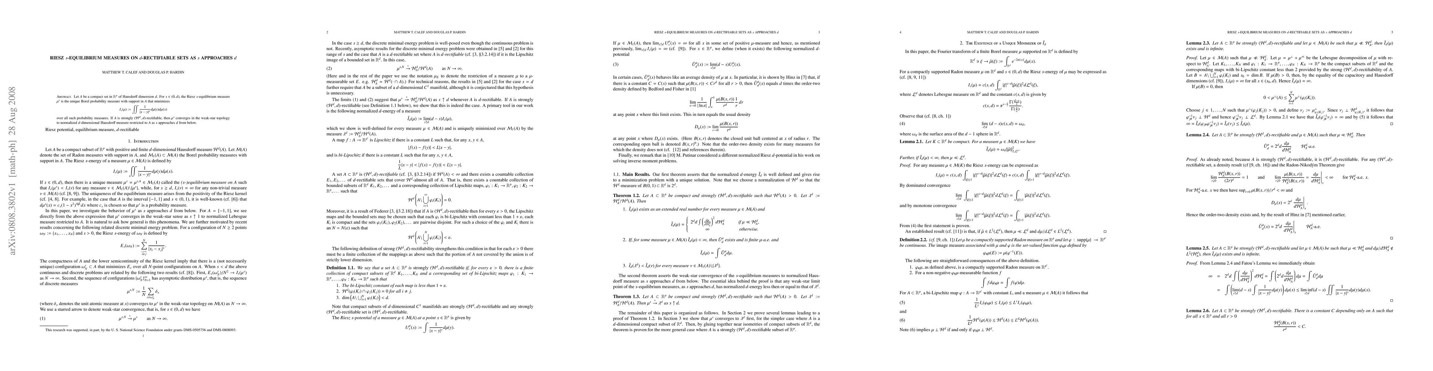 The paper provides a detailed analysis of the convergence of Riesz $s$-equilibrium measures to the Hausdorff measure as $s$ approaches the dimension of the ambient space, using advanced techniques from geometric measure theory and potential theory.