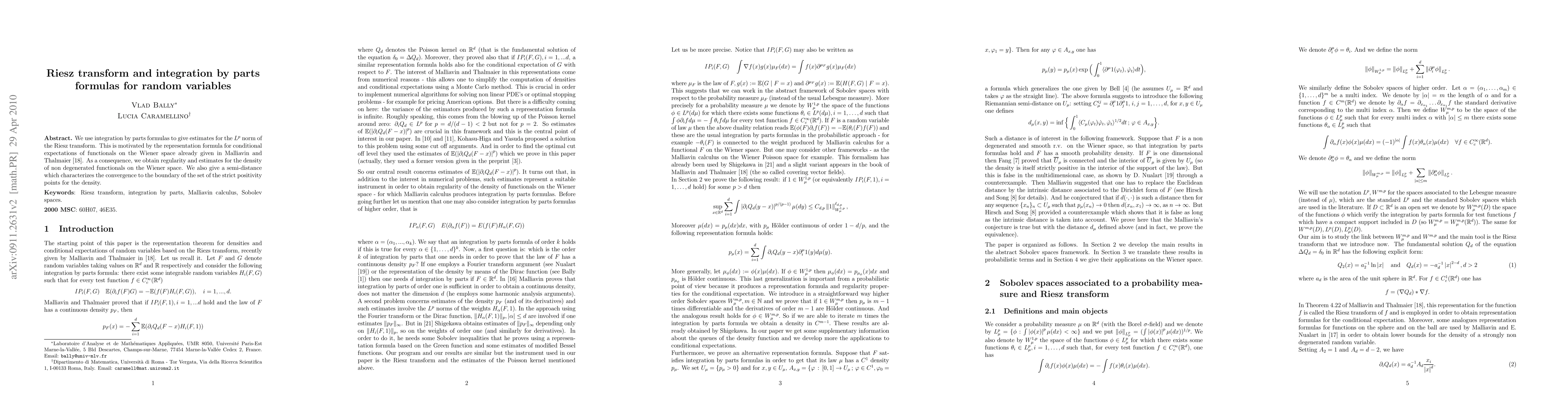 This paper utilizes integration by parts formulas to estimate the $L^p$ norm of the Riesz transform, motivated by existing representation formulas for conditional expectations on Wiener space. It derives regularity and estimates for the density of non-degenerate functionals on Wiener space and introduces a semi-distance characterizing the convergence to the boundary of the set of strict positivity points for the density.