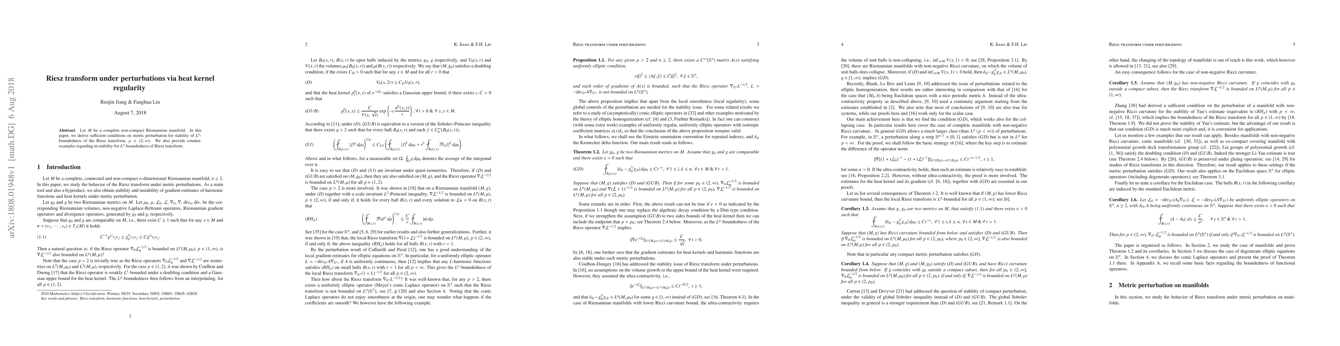 This paper establishes conditions for metric perturbations that ensure the $L^p$-boundedness stability of the Riesz transform on complete non-compact Riemannian manifolds, and it also presents counterexamples demonstrating instability for certain perturbations.