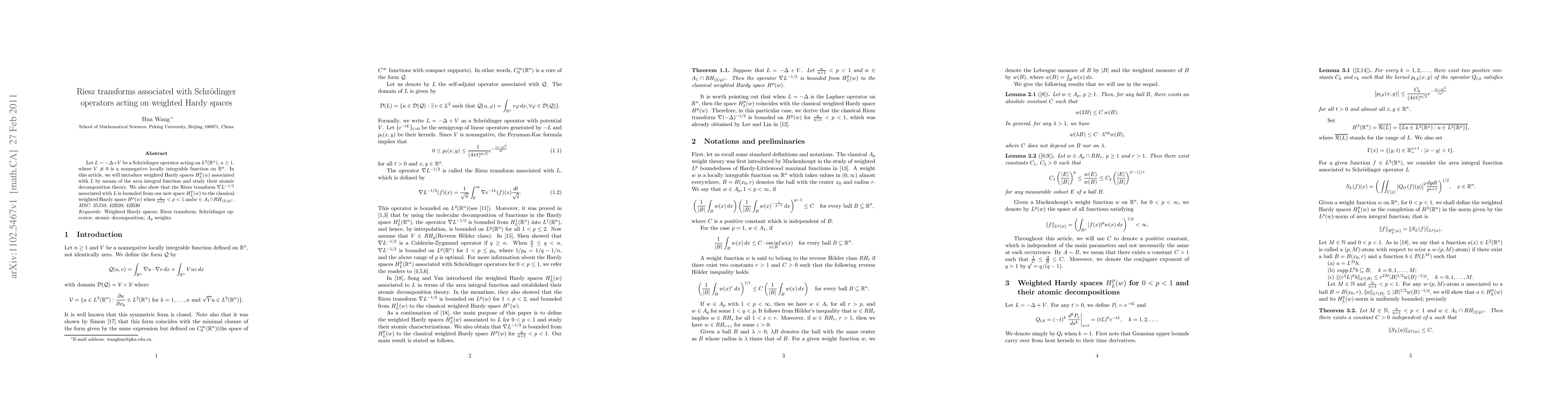 This paper explores weighted Hardy spaces $H^p_L(w)$ associated with a non-negative Schrödinger operator $L=-\Delta+V$ and investigates their atomic decomposition. It demonstrates the boundedness of the Riesz transform $\nabla L^{-1/2}$ from $H^p_L(w)$ to $H^p(w)$ under specific conditions on $p$ and the weight $w$.
