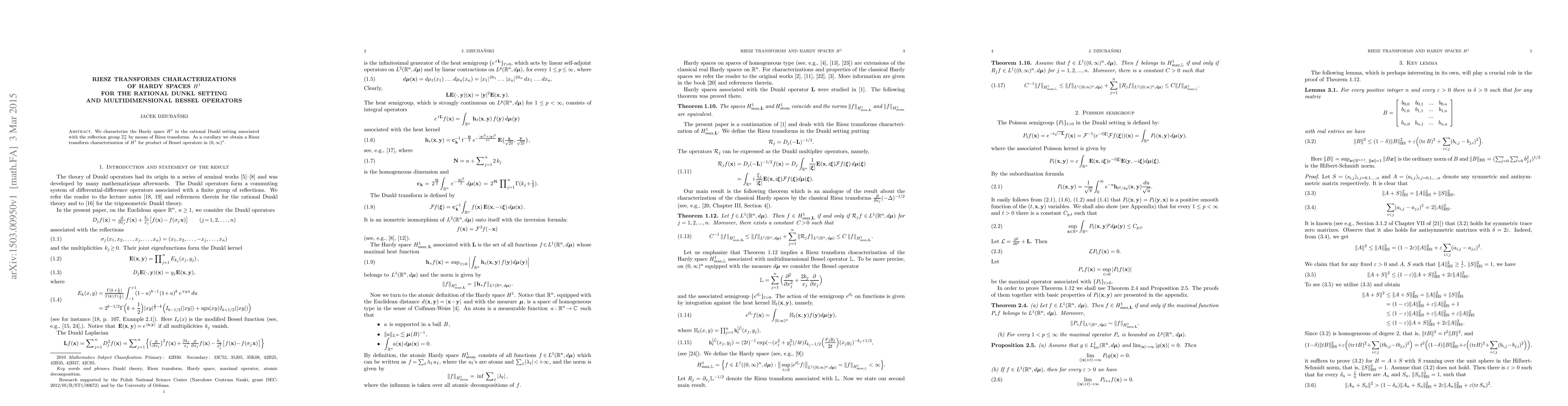 Summary: This paper characterizes the Hardy space $H^1$ in the rational Dunkl setting using Riesz transforms, and provides a corollary for the characterization of $H^1$ associated with a product of multidimensional Bessel operators.