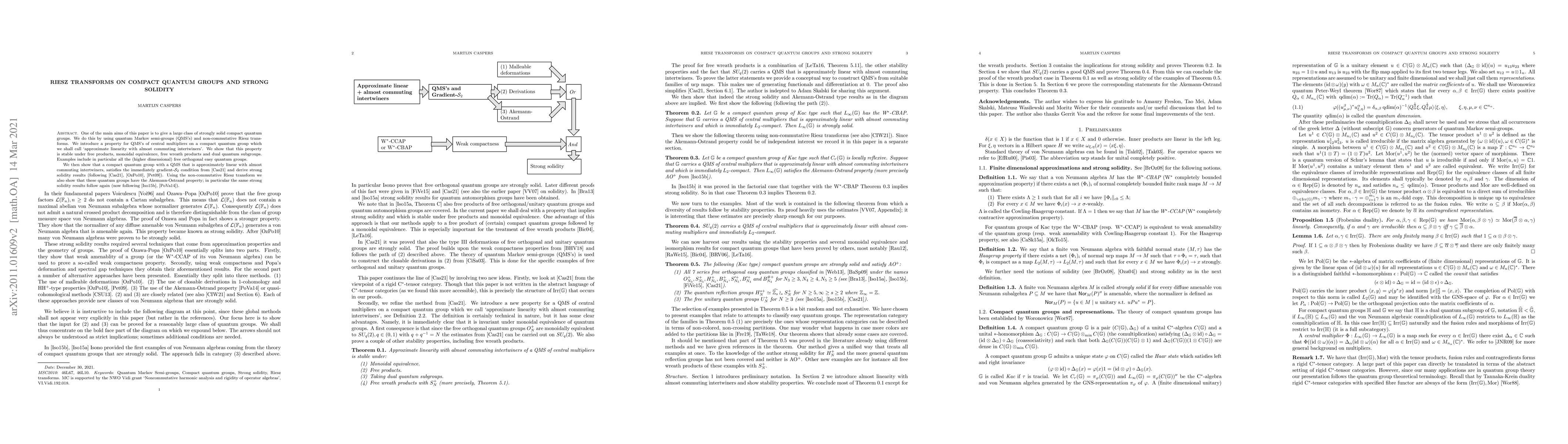 One of the main aims of this paper is to give a large class of strongly solid compact quantum groups. We do this by using quantum Markov semi-groups (QMS's) and non-commutative Riesz transforms. We introduce a property for QMS's of central multipliers on a compact quantum group which we shall call approximate linearity with almost commuting intertwiners. We show that this property is stable under free products, monoidal equivalence, free wreath products and dual quantum subgroups. Examples include in particular all the (higher dimensional) free orthogonal easy quantum groups. We then show that a compact quantum group with a QMS that is approximately linear with almost commuting intertwiners, satisfies the immediately gradient-$\mathcal{S}_2$ condition from [Cas21] and derive strong solidity results (following [Cas21], [OzPo10], [Pet09]). Using the non-commutative Riesz transform we also show that these quantum groups have the Akemann-Ostrand property; in particular the same strong solidity results follow again (now following [Iso15b], [PoVa14]).