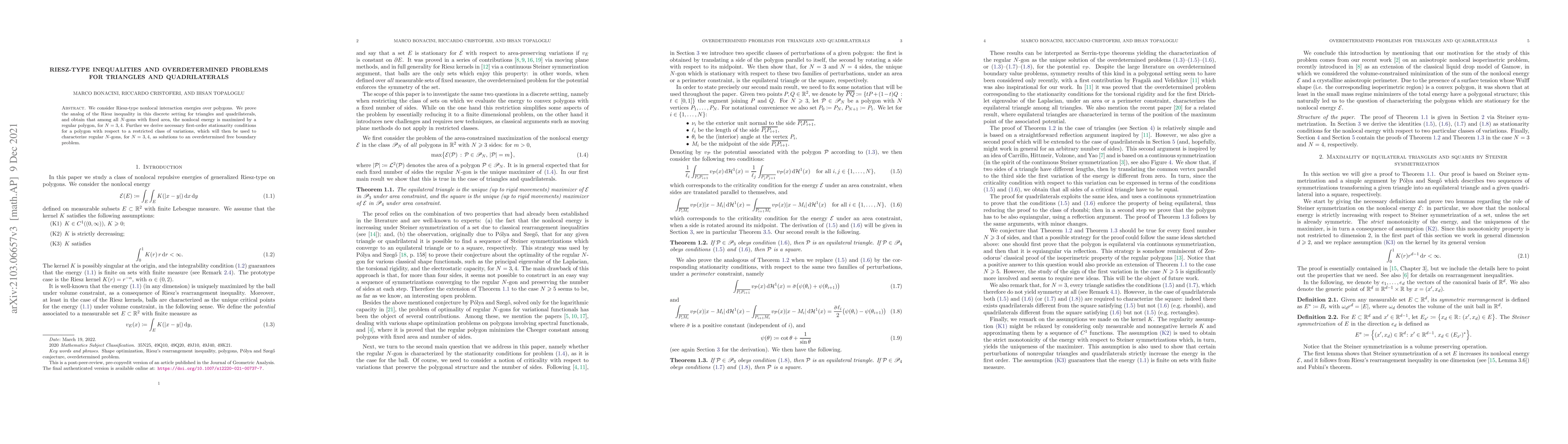 Researchers prove that among polygons with fixed area, nonlocal energy is maximized by regular polygons for triangles and quadrilaterals, providing insights into optimal polygon shapes.