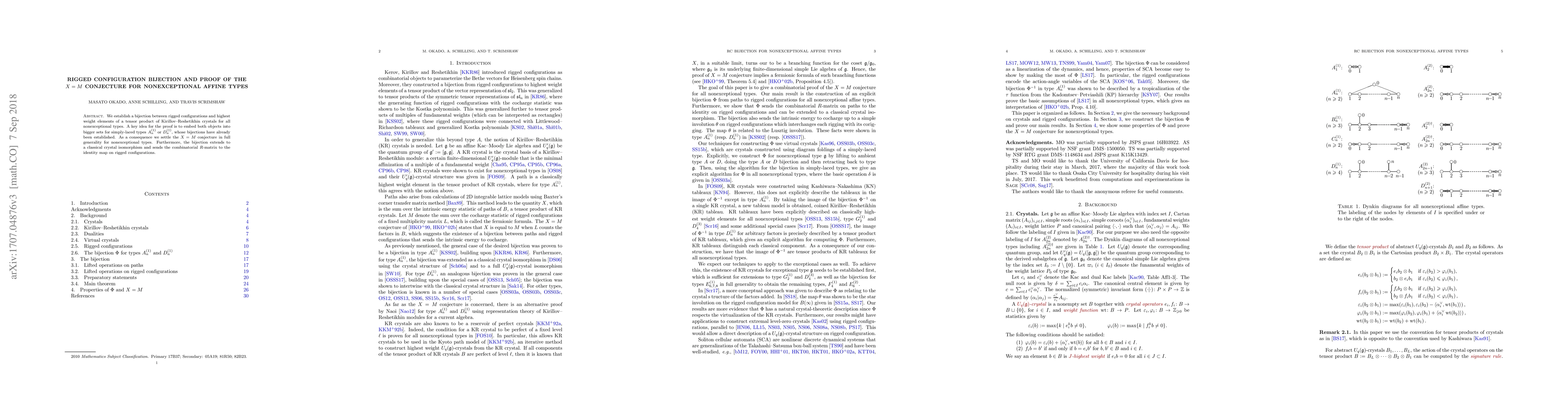 We establish a bijection between rigged configurations and highest weight elements of a tensor product of Kirillov-Reshetikhin crystals for all nonexceptional types. A key idea for the proof is to embed both objects into bigger sets for simply-laced types $A_n^{(1)}$ or $D_n^{(1)}$, whose bijections have already been established. As a consequence we settle the $X=M$ conjecture in full generality for nonexceptional types. Furthermore, the bijection extends to a classical crystal isomorphism and sends the combinatorial $R$-matrix to the identity map on rigged configurations.