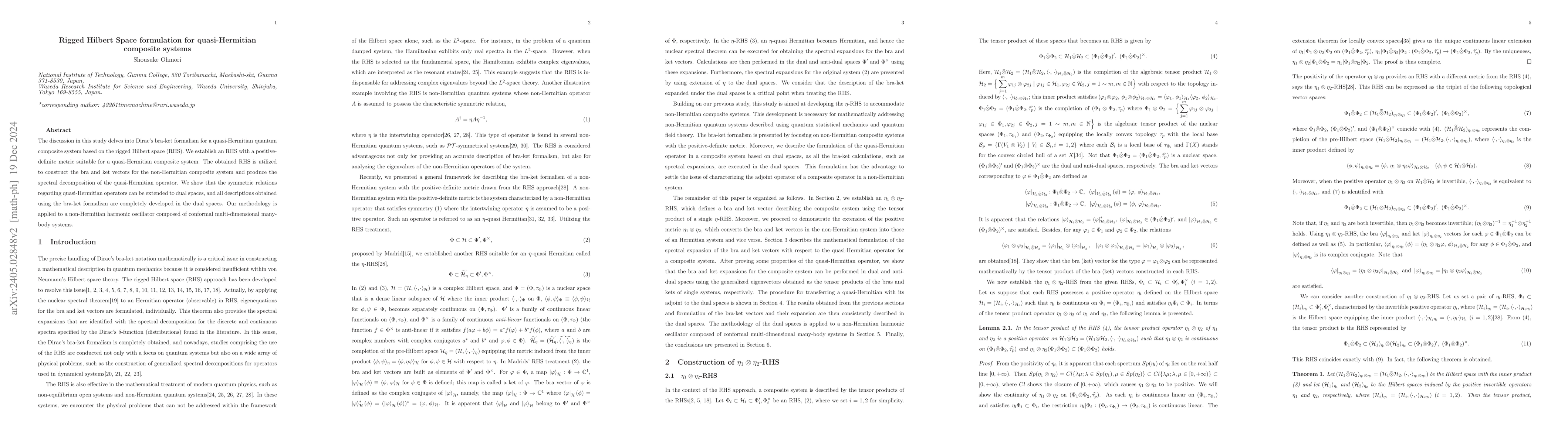 This paper develops a rigged Hilbert space formulation for quasi-Hermitian quantum composite systems, establishing a positive metric RHS and utilizing it to construct bra and ket vectors for non-Hermitian systems. The method is demonstrated through a non-Hermitian harmonic oscillator in conformal multi-dimensional many-body systems.