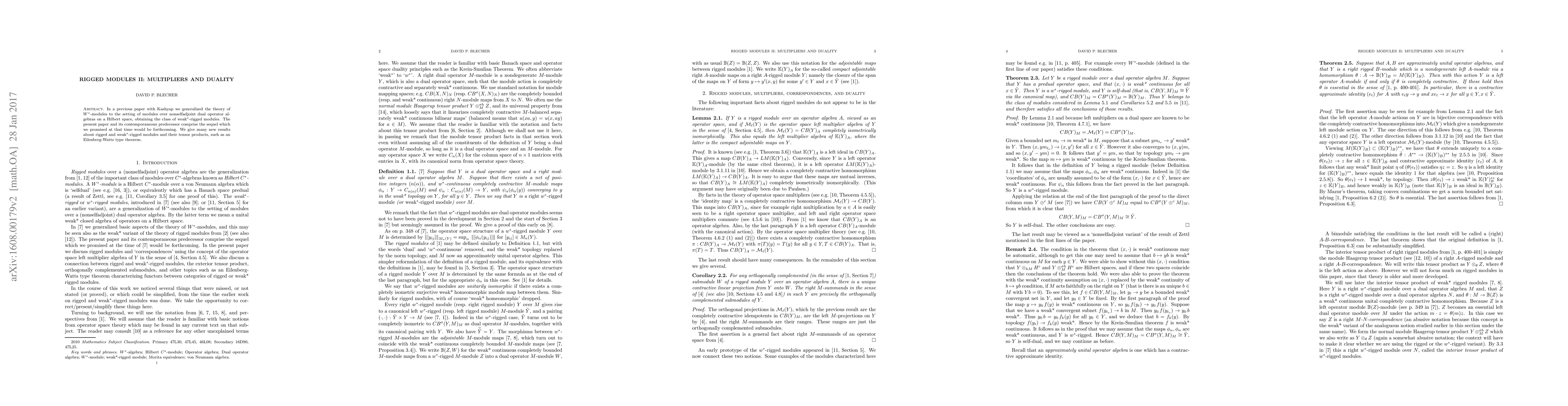 In a previous paper with Kashyap we generalized the theory of $W^*$-modules to the setting of modules over nonselfadjoint dual operator algebras, obtaining the class of weak*-rigged modules. The present paper and its contemporaneous predecessor comprise the sequel which we promised at that time would be forthcoming. We give many new results about rigged and weak*-rigged modules and their tensor products, such as an Eilenberg-Watts type theorem.