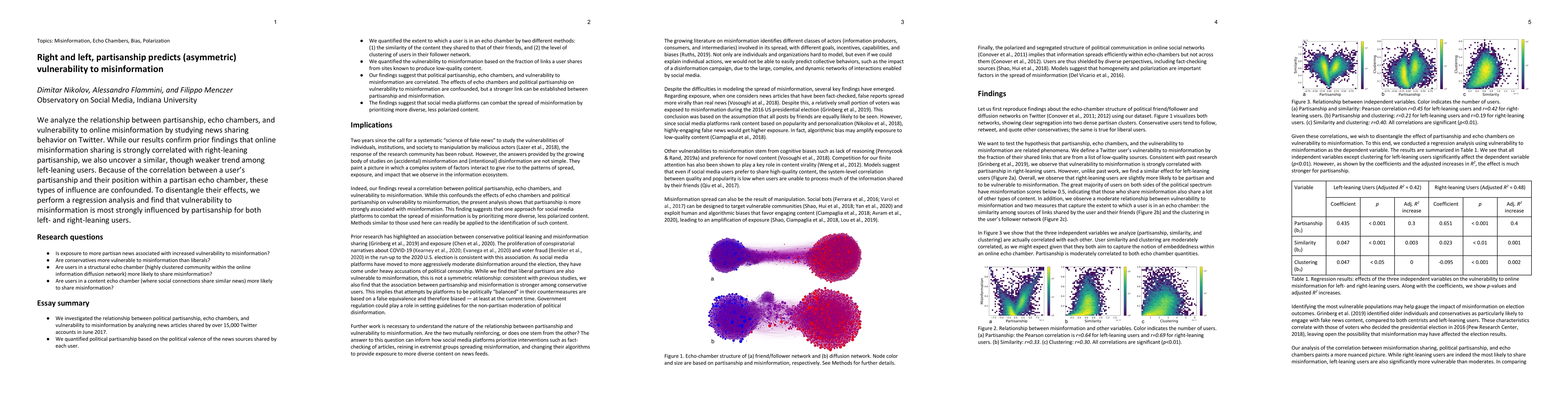 This study reveals that both right- and left-leaning Twitter users exhibit vulnerability to online misinformation, with partisanship being a stronger predictor than echo chamber effects. Regression analysis disentangles the influence of partisanship and echo chambers, confirming partisanship's significant role in misinformation susceptibility.