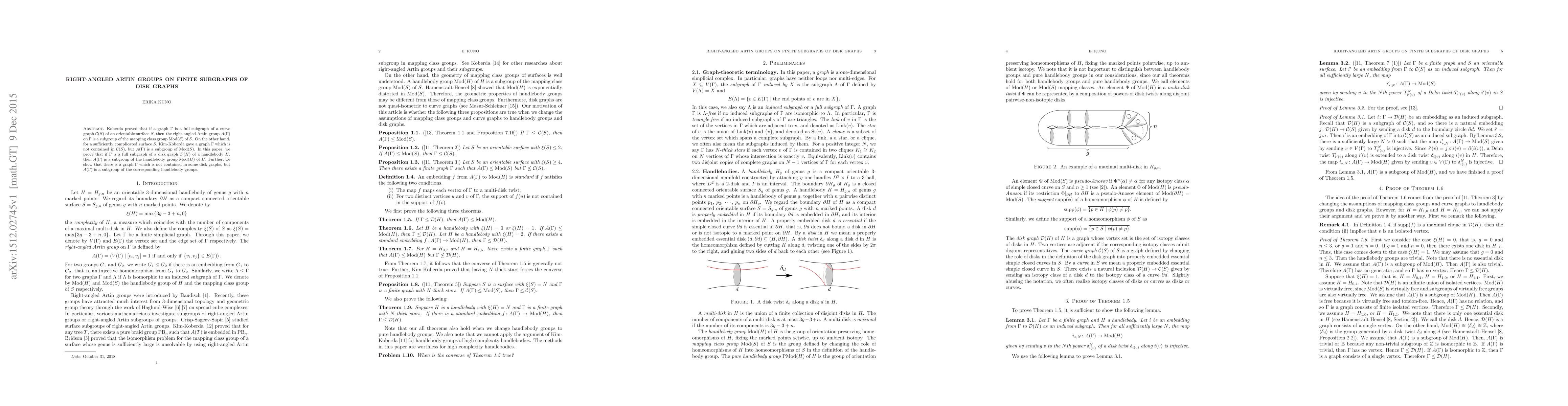 Researchers prove that right-angled Artin groups on finite subgraphs of disk graphs are subgroups of handlebody groups, extending previous results for curve graphs.