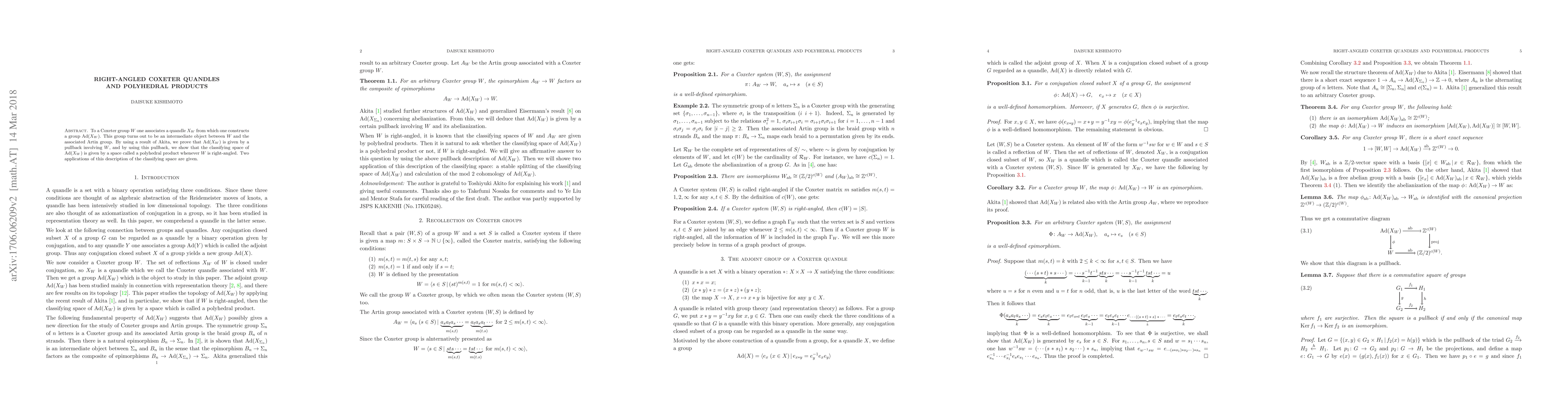 To a Coxeter group $W$ one associates a quandle $X_W$ from which one constructs a group $\mathrm{Ad}(X_W)$. This group turns out to be an intermediate object between $W$ and the associated Artin group. By using a result of Akita, we prove that $\mathrm{Ad}(X_W)$ is given by a pullback involving $W$, and by using this pullback, we show that the classifying space of $\mathrm{Ad}(X_W)$ is given by a space called a polyhedral product whenever $W$ is right-angled. Two applications of this description of the classifying space are given.