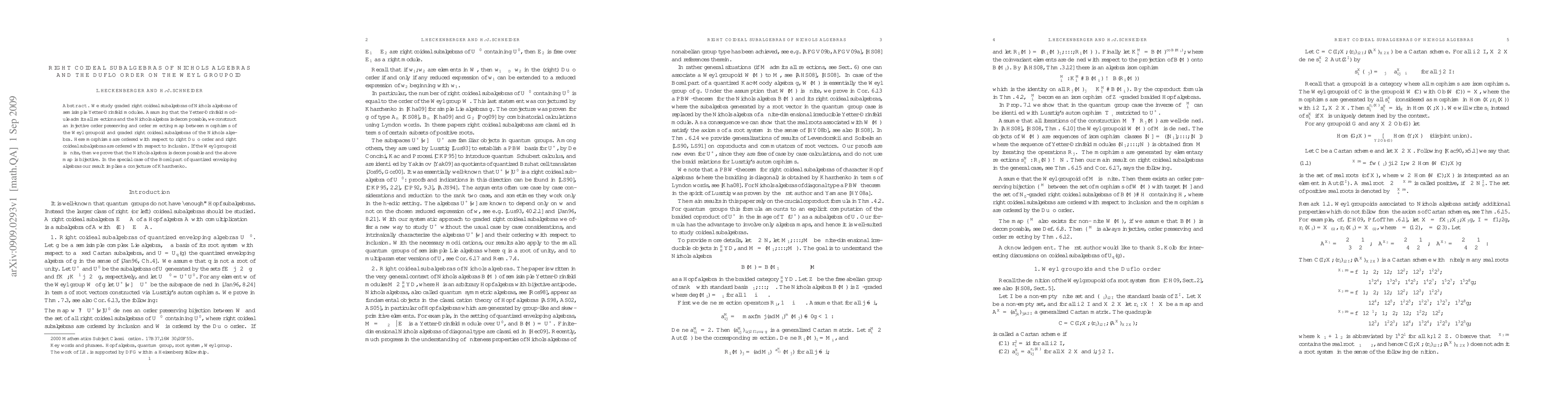 We study graded right coideal subalgebras of Nichols algebras of semisimple Yetter-Drinfeld modules. Assuming that the Yetter-Drinfeld module admits all reflections and the Nichols algebra is decomposable, we construct an injective order preserving and order reflecting map between morphisms of the Weyl groupoid and graded right coideal subalgebras of the Nichols algebra. Here morphisms are ordered with respect to right Duflo order and right coideal subalgebras are ordered with respect to inclusion. If the Weyl groupoid is finite, then we prove that the Nichols algebra is decomposable and the above map is bijective. In the special case of the Borel part of quantized enveloping algebras our result implies a conjecture of Kharchenko. Key words: Hopf algebra, quantum group, root system, Weyl group