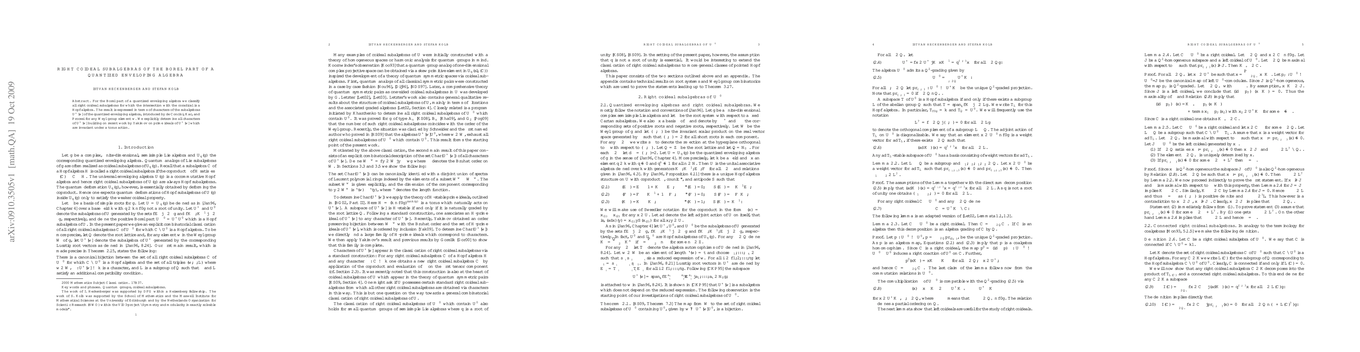 This paper classifies all right coideal subalgebras of the Borel part of a quantized enveloping algebra where the intersection with the coradical forms a Hopf algebra, expressed via characters of subalgebras $U^+[w]$. It determines these characters based on recent findings on prime ideals invariant under torus action. Keywords: Quantum groups, coideal subalgebras