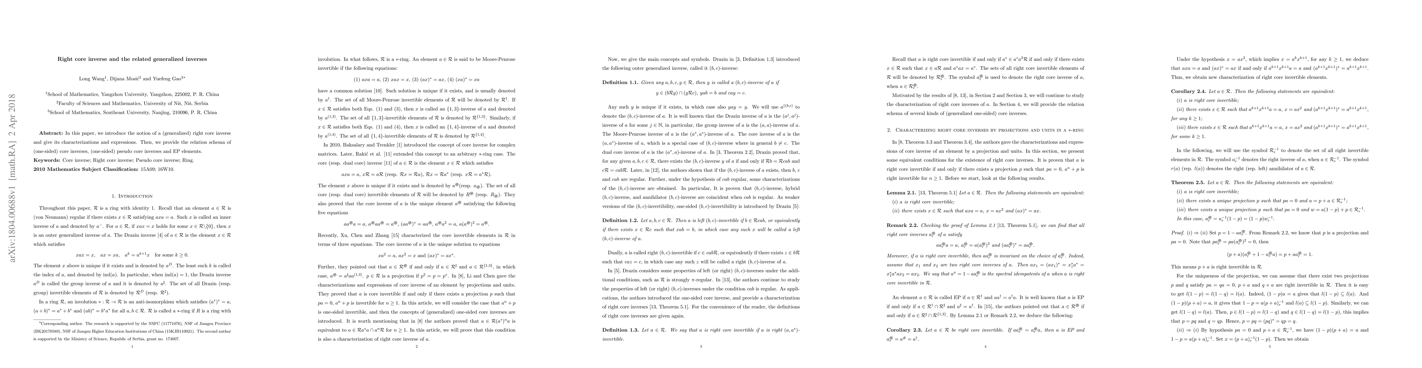 In this paper, we introduce the notion of a (generalized) right core inverse and give its characterizations and expressions. Then, we provide the relation schema of (one-sided) core inverses, (one-sided) pseudo core inverses and EP elements.