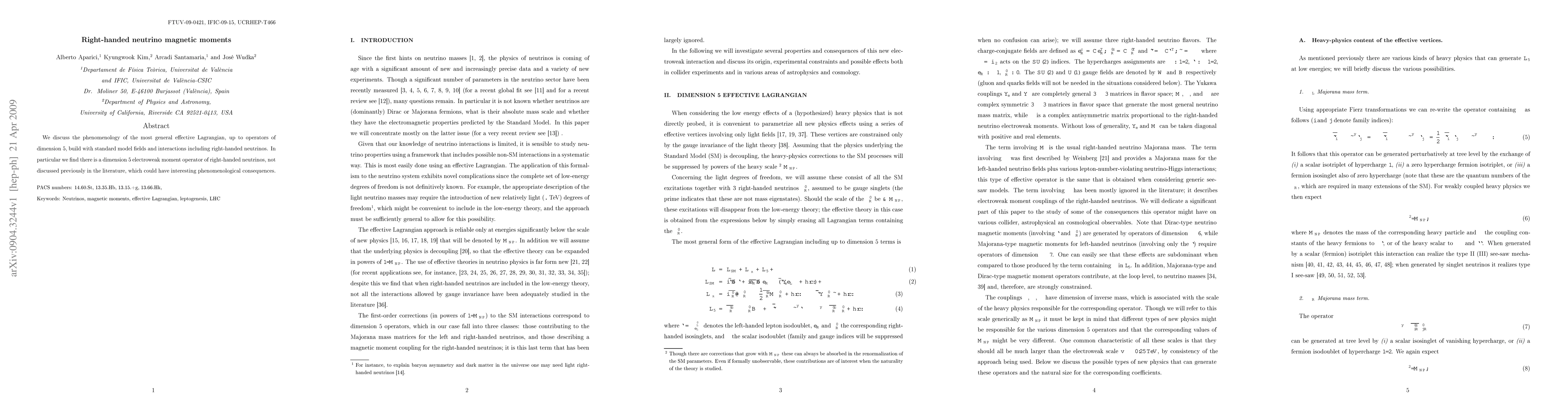 Researchers found a new dimension 5 electroweak moment operator in effective Lagrangian for right-handed neutrinos, which could have interesting implications for particle physics.