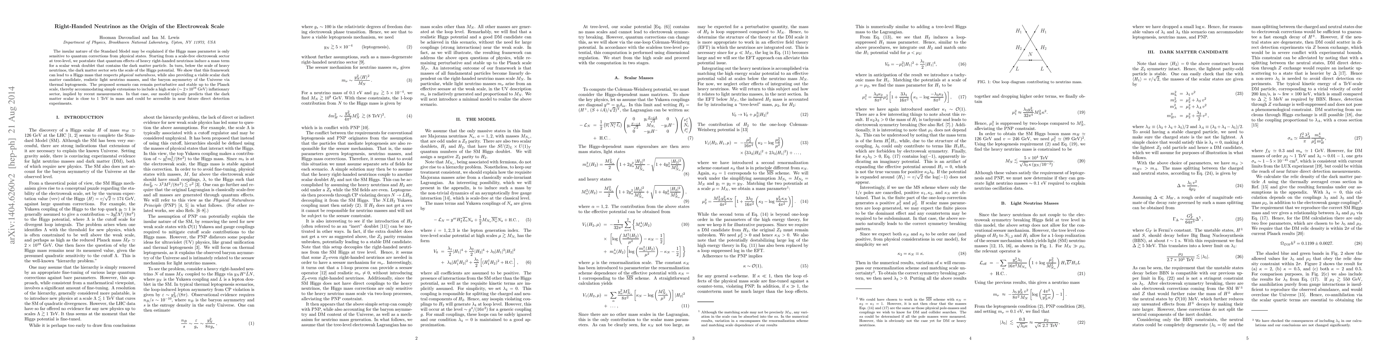 This paper proposes that right-handed neutrinos generate the electroweak scale through quantum corrections, leading to a natural Higgs mass and viable dark matter candidate. It also suggests a connection between the dark matter sector and the Higgs potential, offering a framework for leptogenesis and inflation.
