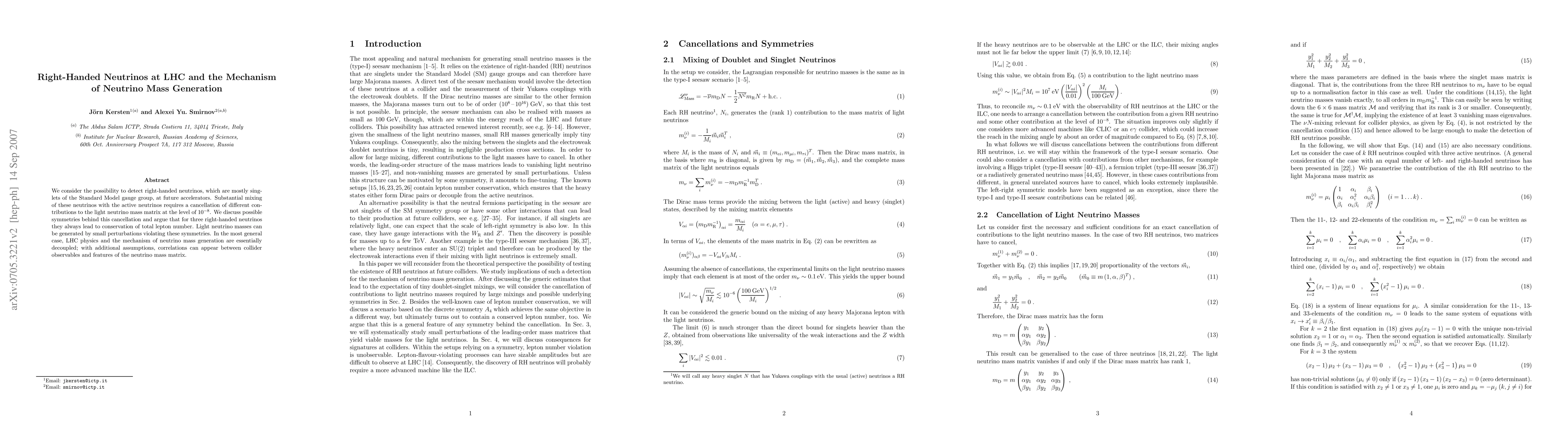 This paper explores the potential detection of right-handed neutrinos at future accelerators like the LHC and examines the mechanisms behind the generation of light neutrino masses. It argues that substantial mixing between right-handed and active neutrinos necessitates a precise cancellation in the mass matrix, which is typically maintained by conserved lepton number symmetries.