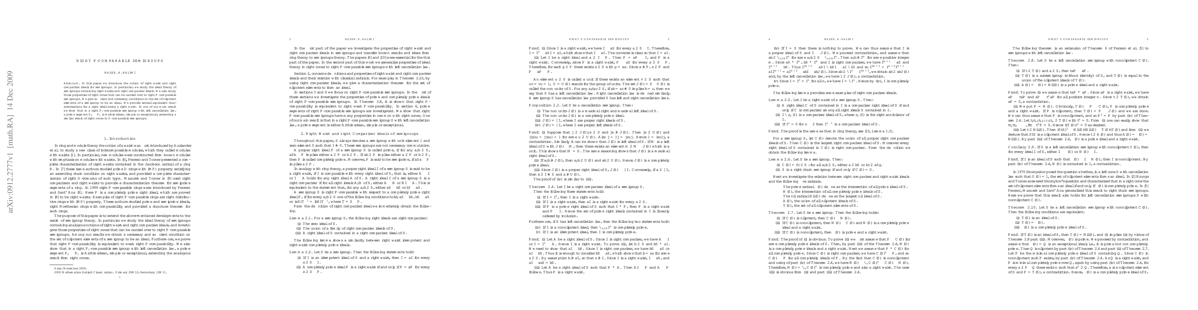 In this paper we introduce the notion of right waist and right comparizer ideals for semigroups. In particular, we study the ideal theory of semigroups containing right waists and right comparizer ideals. We also study those properties of right cones that can be carried over to right $P$-comparable semigroups. We give sufficient and necessary conditions on the set of nilpotent elements of a semigroup to be an ideal. We provide several equivalent characterizations for a right ideal being a right waist. In one of our main result we show that in a right $P_1$-comparable semigroup with left cancellation law, a prime segment $P_2\subset P_1$ is Archimedean, simple or exceptional, extending a similar result of right cones to $P$-comparable semigroups.