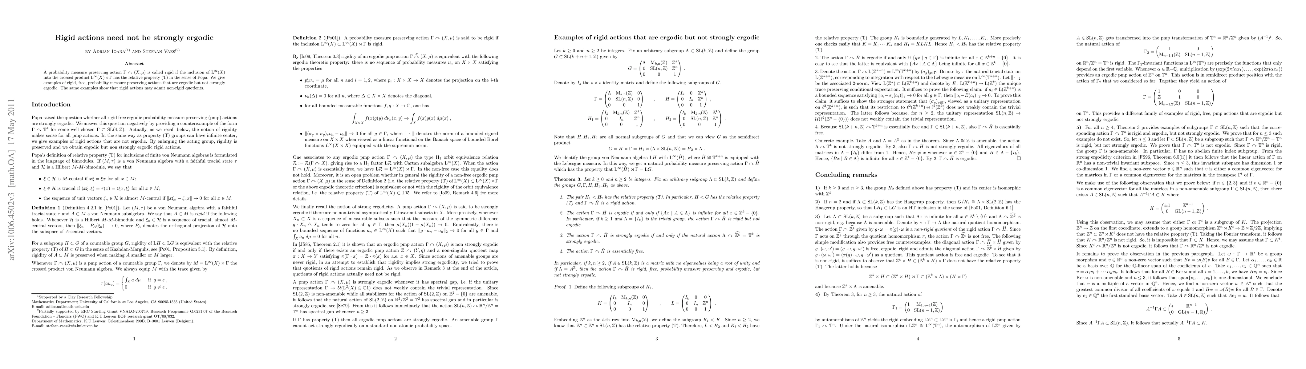 This research provides new insights into the properties of rigid free pmp actions on tori and their relationship to ergodicity and strong ergodicity.