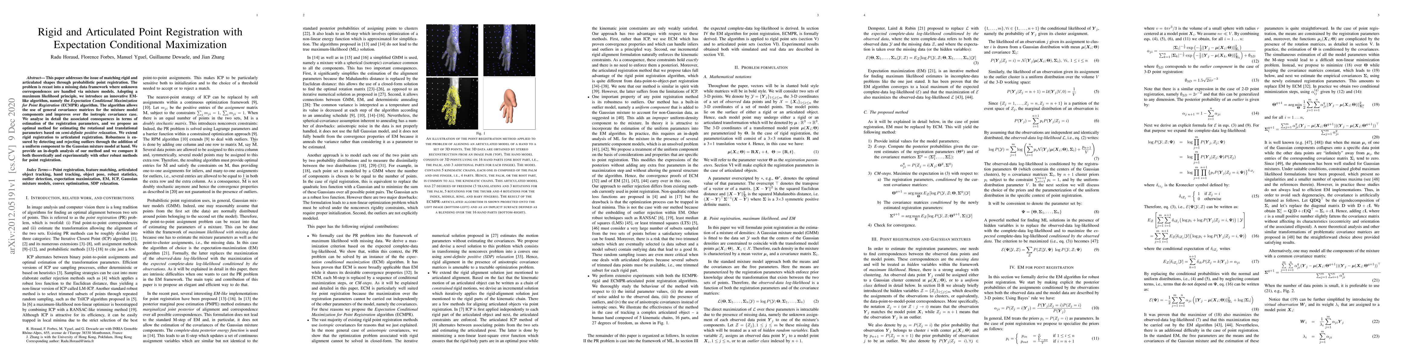 This paper addresses the issue of matching rigid and articulated shapes through probabilistic point registration. The problem is recast into a missing data framework where unknown correspondences are handled via mixture models. Adopting a maximum likelihood principle, we introduce an innovative EM-like algorithm, namely the Expectation Conditional Maximization for Point Registration (ECMPR) algorithm. The algorithm allows the use of general covariance matrices for the mixture model components and improves over the isotropic covariance case. We analyse in detail the associated consequences in terms of estimation of the registration parameters, and we propose an optimal method for estimating the rotational and translational parameters based on semi-definite positive relaxation. We extend rigid registration to articulated registration. Robustness is ensured by detecting and rejecting outliers through the addition of a uniform component to the Gaussian mixture model at hand. We provide an in-depth analysis of our method and we compare it both theoretically and experimentally with other robust methods for point registration.