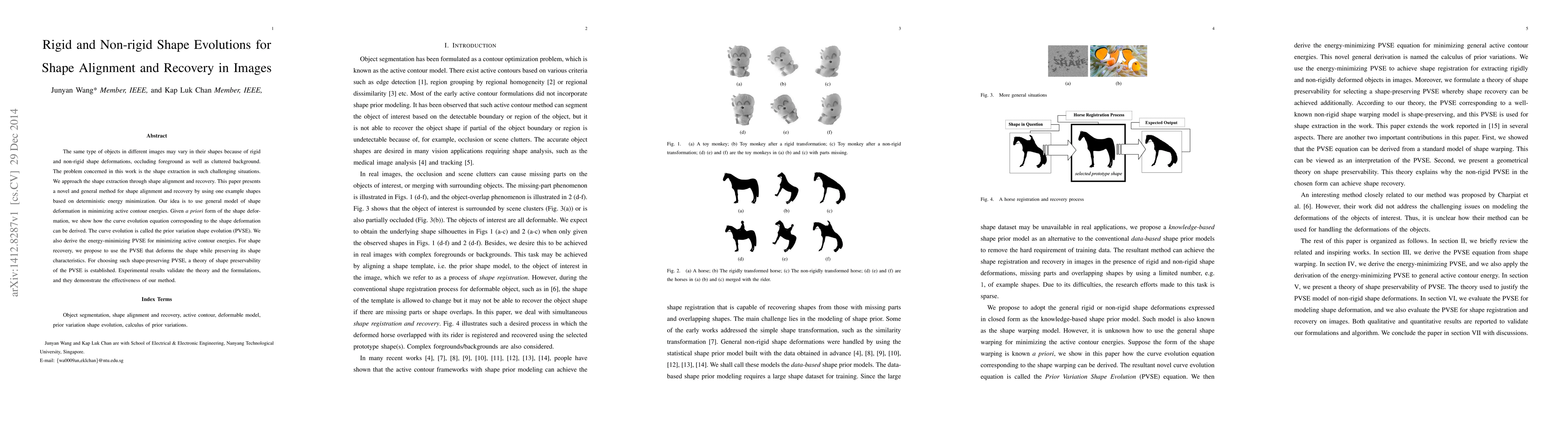 This paper introduces a novel method for shape alignment and recovery in images, focusing on both rigid and non-rigid deformations. It proposes a prior variation shape evolution (PVSE) based on deterministic energy minimization to extract shapes, demonstrating its effectiveness through experimental validation.
